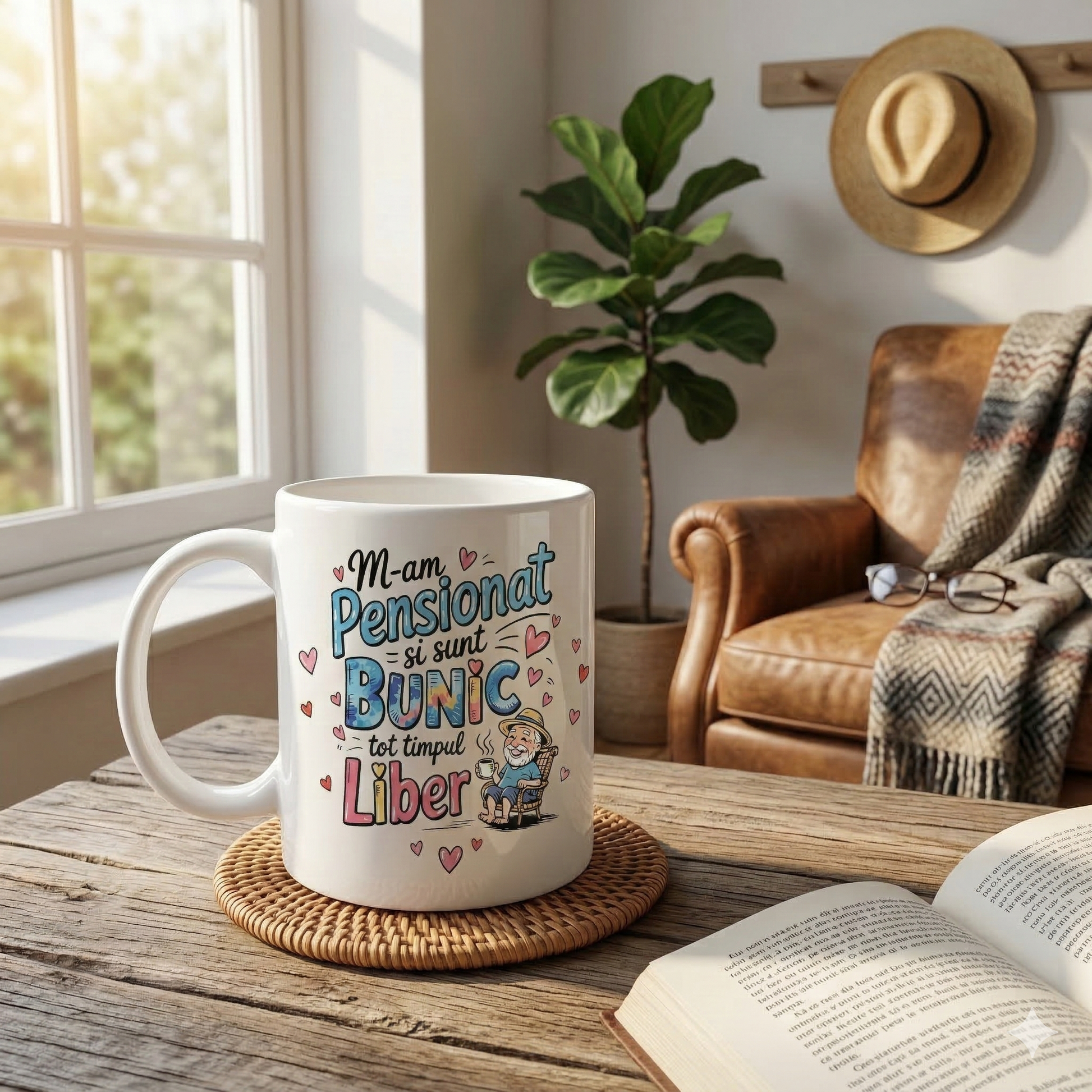 Cană Cadou Pensionare Bunic Liber - Text Românesc Amuzant - Ceramică Albă