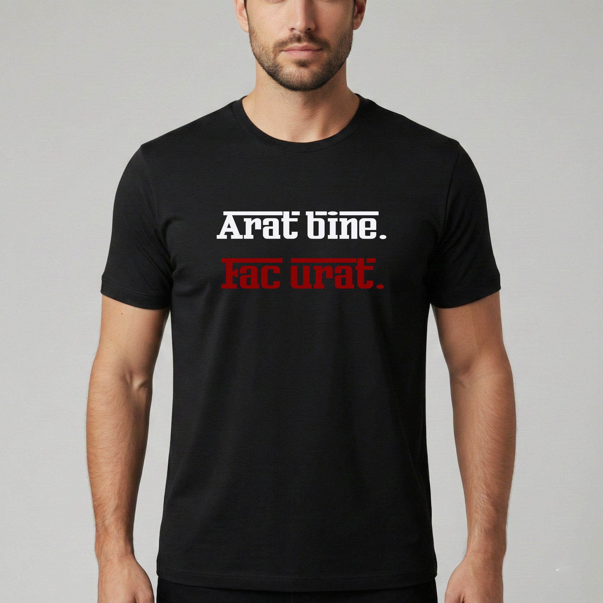 tricou mesaj amuzant, tricou arat bine fac urat, tricou bumbac personalizat, tricou atitudine urbana, cadouri barbati amuzante, haine street style Romania.