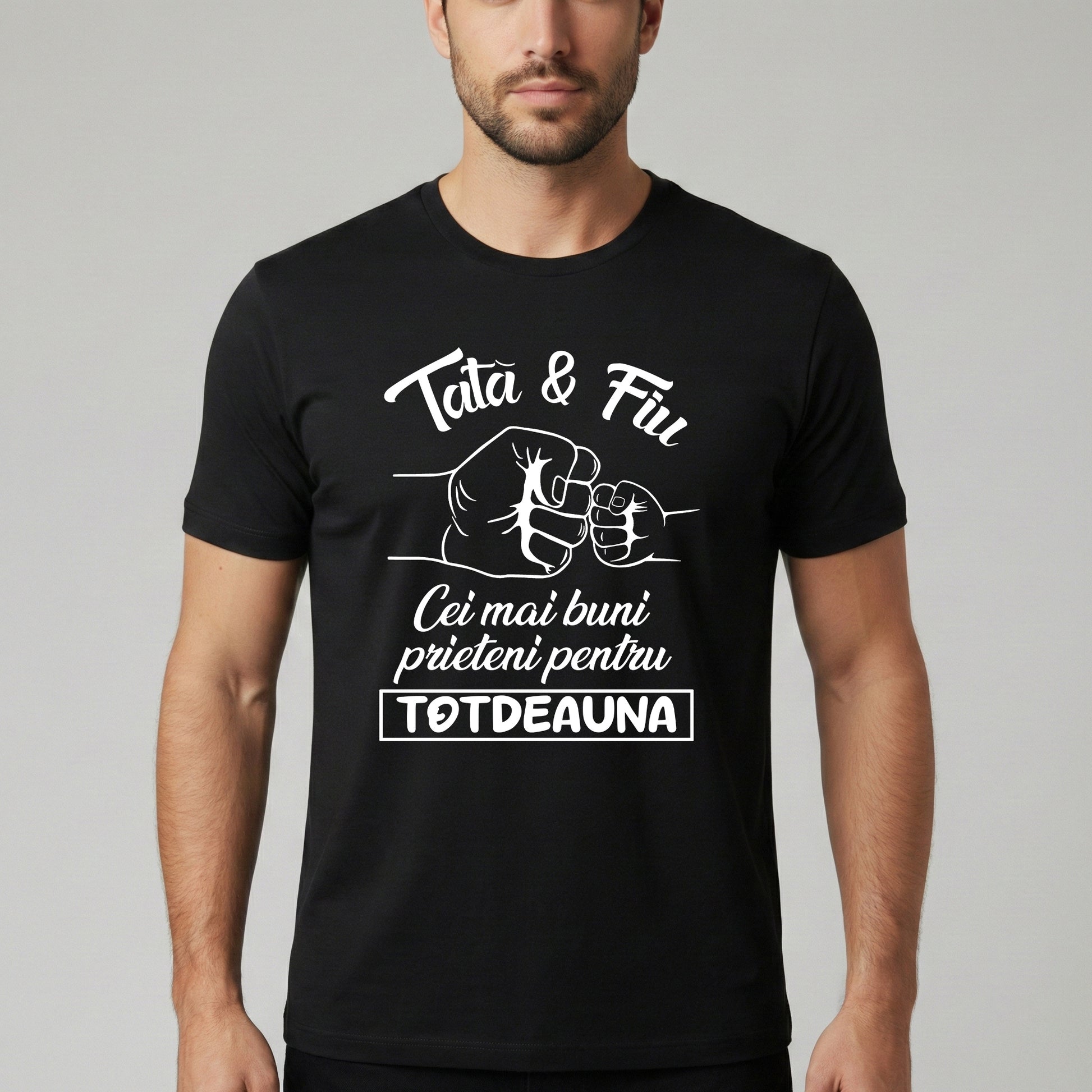 Există prietenii care durează o viață, iar cea dintre un tată și fiul său este cea mai specială. Acest tricou nu este doar o piesă vestimentară, ci o declarație de iubire și complicitate. Designul minimalist cu ilustrația iconică de „fist bump” (atinsul pumnilor) simbolizează respectul și prietenia eternă dintre voi doi.